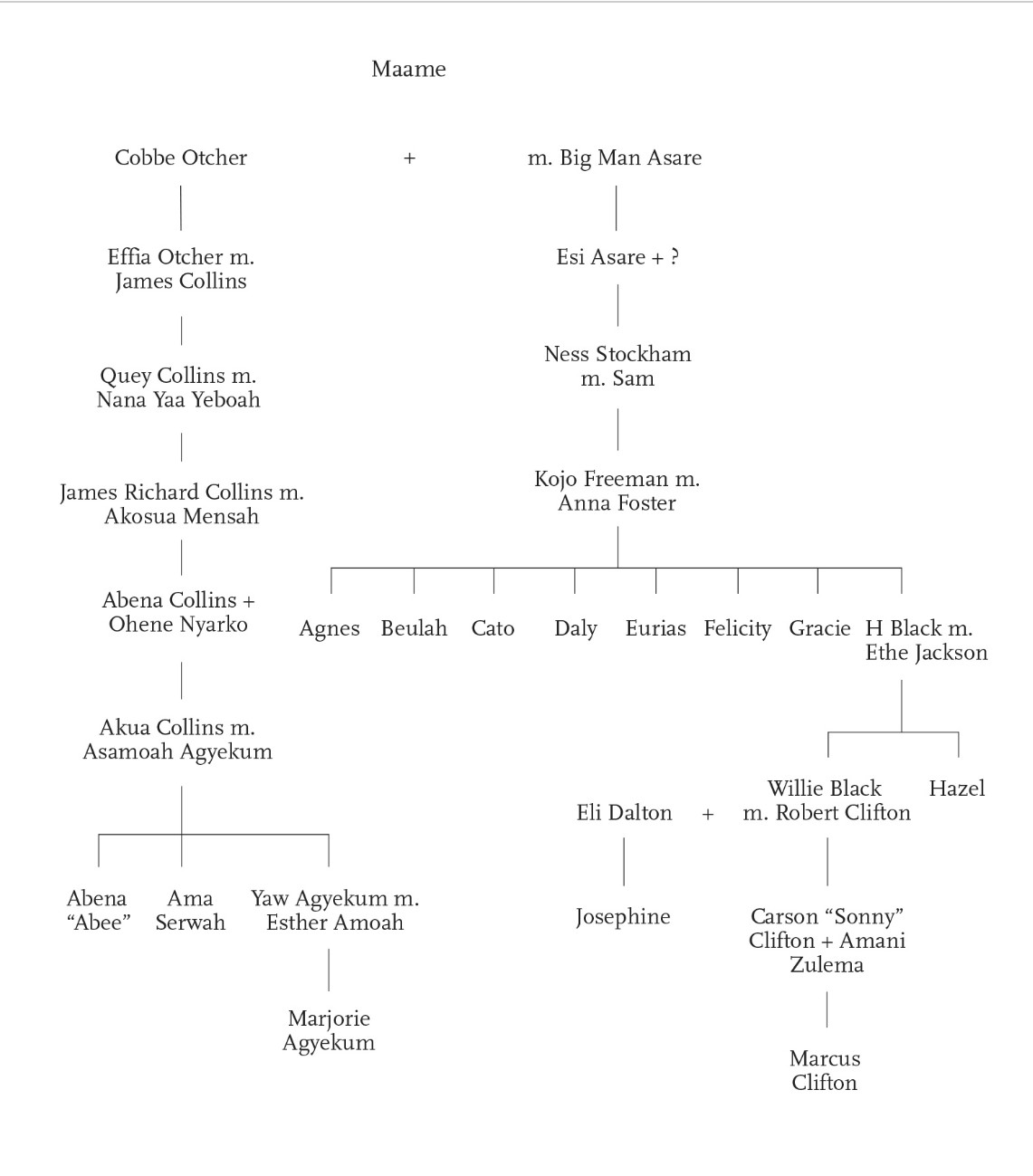 See the book’s character map here, timeline context here, Ghanaian history here, and Yaa Gyasi’s backstory here.