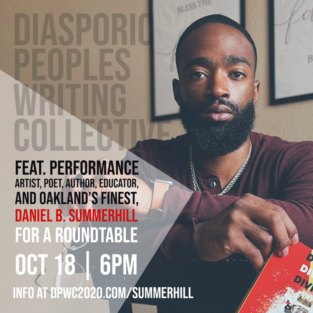 The Diasporic Peoples Writing Collective (DPWC) hosted a fantastic line-up of poets and writers during its 2021-22 season, and this page archives the announcement links to each of our guests. We invite you to click to browse clips of their performances and to contact us as we look forward to staging future events and growing our collective. DPWC2020.COM/contact